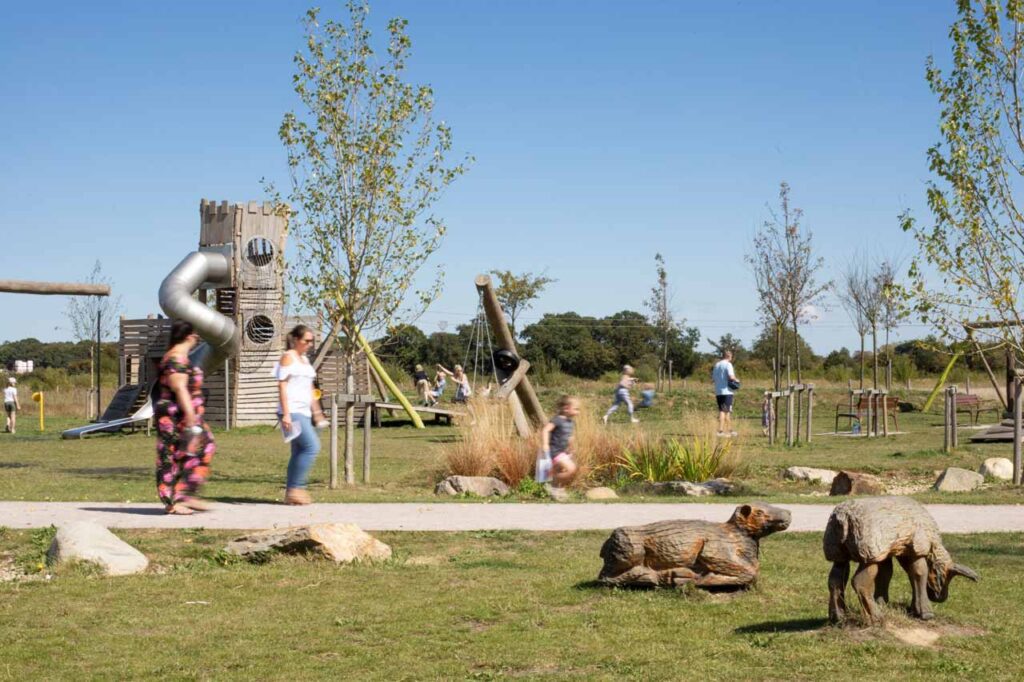 The council worked with landscape architects from BDP to design and develop the park, which was completed in 2018. It brings together quality natural amenity and nature conservation spaces featuring wildflower meadows, natural grasslands to encourage ground nesting birds, circular walks with interpretation boards, community orchards, a leisure area with a large Iron Age hill fort play area with a dry river-bed feature, a new footbridge for access and a small amount of car parking.