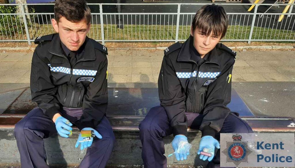 The young police volunteers concentrated their efforts in Pencester Park and removed needles, lighters and cannisters from the area during their search, which took place whilst there was a community event in the area.