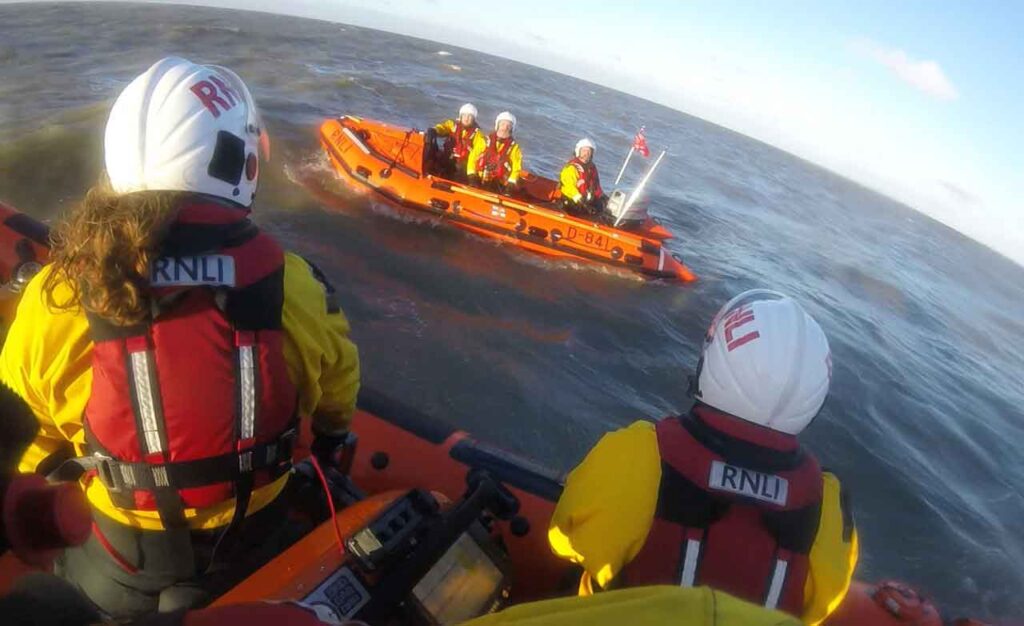 The Whitstable lifeboat crew liaise with the crew of the Margate D class lifeboat offshore from Bishopstone during operation on Wednesday afternoon Photo: Whitstable RNLI