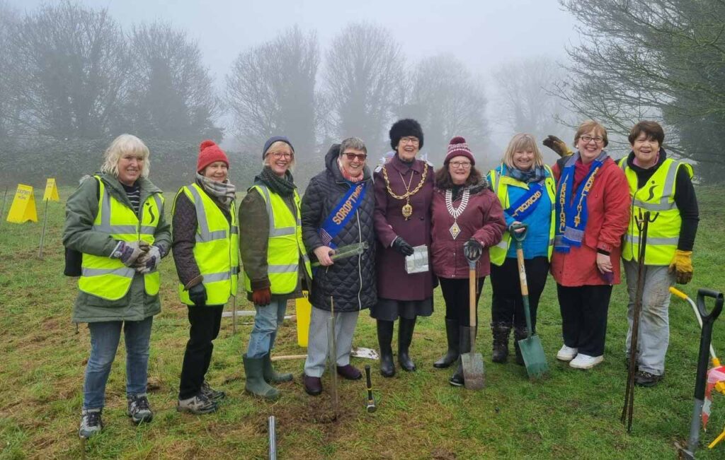 Mayor of Maidstone Cllr Fay Gooch joined the local Soroptimist group to plant the first of 420 trees at Bridge Mill Way Recreation Ground in Tovil on a very cold and foggy morning on Saturday 15 January.