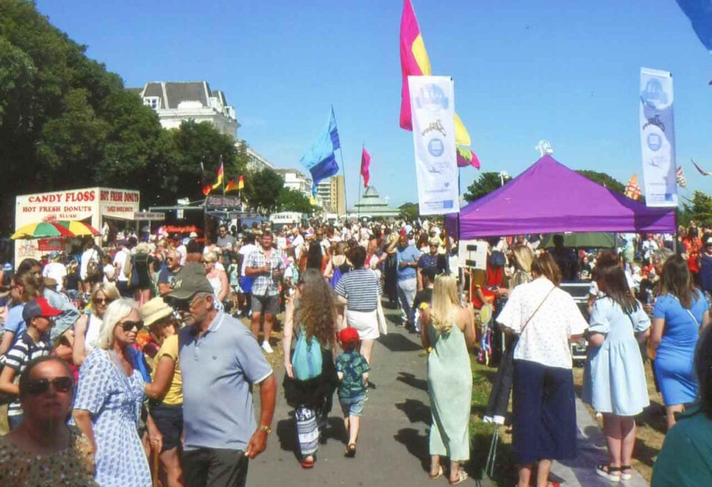 At just after 2pm the parade made its way through to Tram Road and the Old High Street where vast crowds had gathered. Heading slowly up the hill, the parade then turned into Rendezvous Street and Sandgate Road, occasionally stopping to perform and dance, before eventually making its way onto The Leas under the Memorial Arch.
