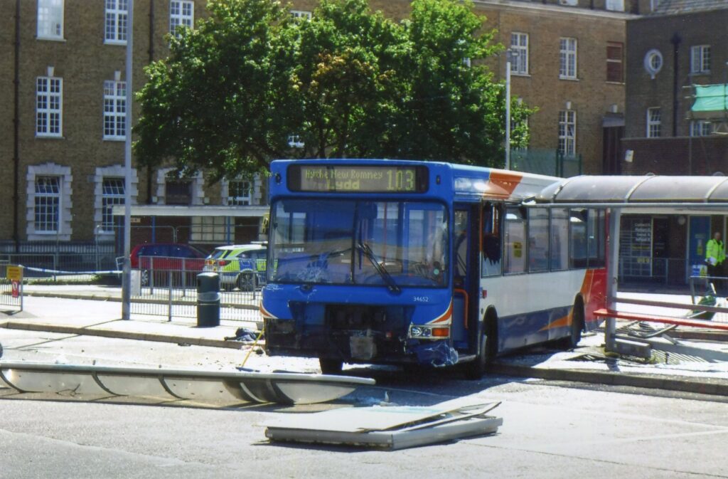 Words by Ray Duff – It’s understood that shortly after 10.00am this morning, 20 August, a single decker bus swerved into two central stands at the Folkestone Bus Station, injuring a man who was airlifted to hospital.