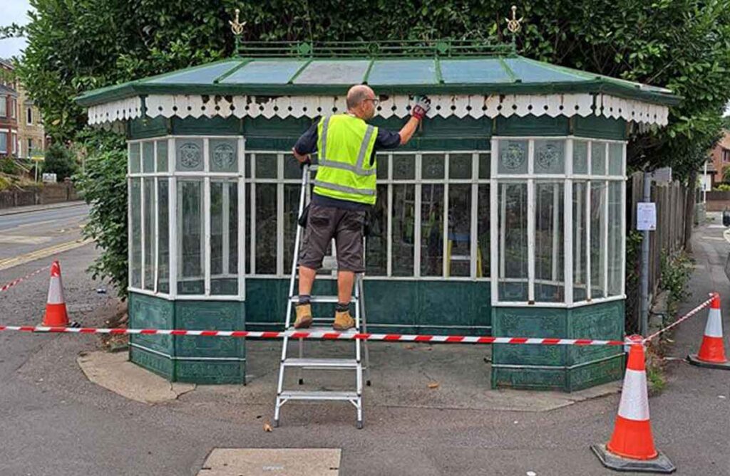 Preparing the Dover Tram Shelter for a 125th Anniversary paint job Photo: DDC