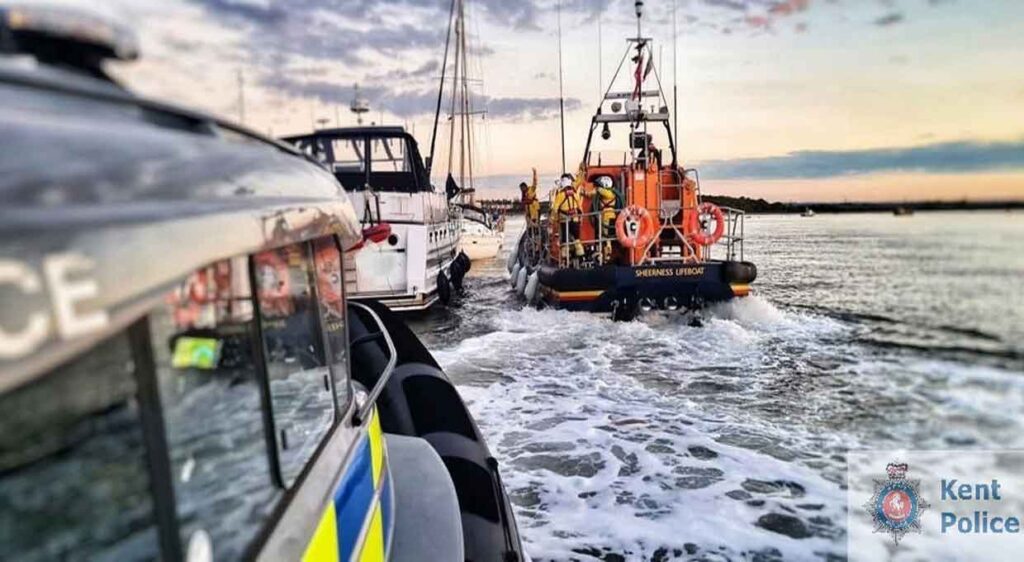 Officers from the Search and Marine Unit were patrolling the River Medway on the police vessel Invicta when they were made aware of the problem by HM Coastguard, and arrived at the location shortly afterwards.