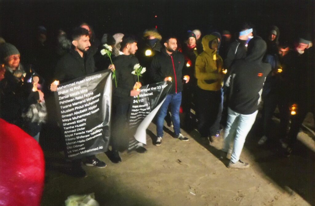 Words and pictures by Ray Duff… More than fifty people gathered on Folkestone’s Sunny Sands to mark the first anniversary of the 32 people who slowly froze to death while attempting to cross the Channel exactly one year ago.