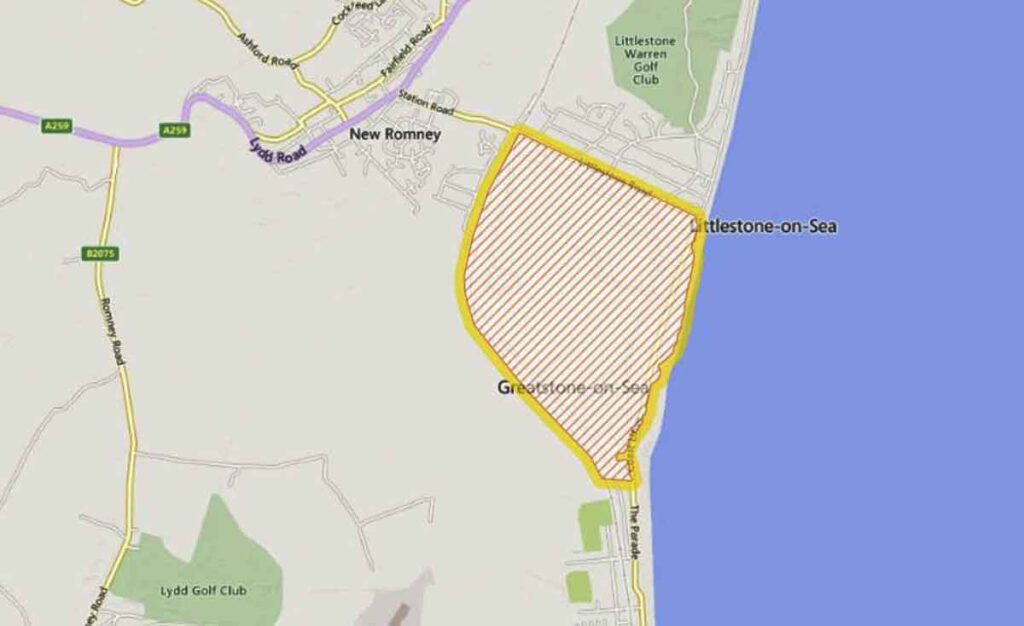 The area under threat near New Romney Map: Environment Agency…