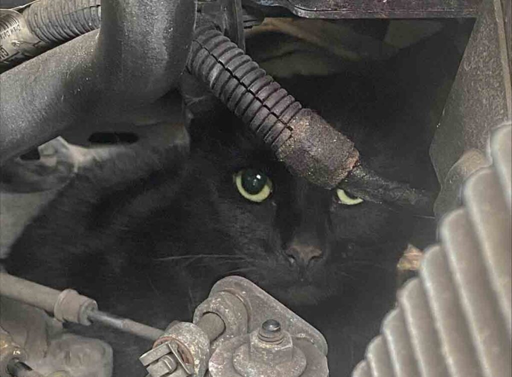 “I gently prodded it with a stick to check it was breathing and saw it was a terrified little cat. It reversed even further into the engine and was stuck. I tried to reach it but it was too far down and there wasn’t any way I could coax it out. My husband couldn’t touch it as he’s allergic to cats.”