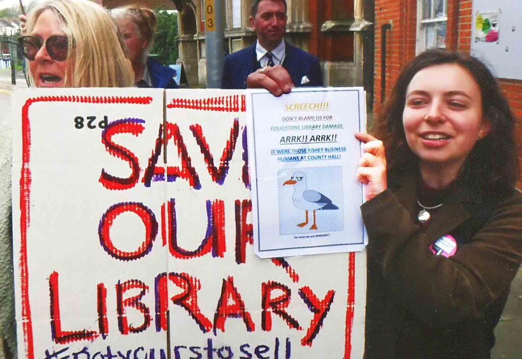 Many of the speakers loudly ridiculed the recent comment from KCC that the problem was down to seagulls nesting. The demonstrators however claimed it was due to many years of ongoing neglect of a Grade II, purpose built Library facility, by the County Council.
