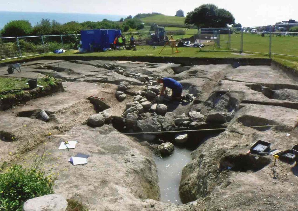 The site was suspected to have Roman presence when curator A.M. Browne-Anderson found pottery and dug a small trench a few years earlier. Winbolt later uncovered the walls and recorded some finds, though much was lost. The cliff edge has since eroded significantly.