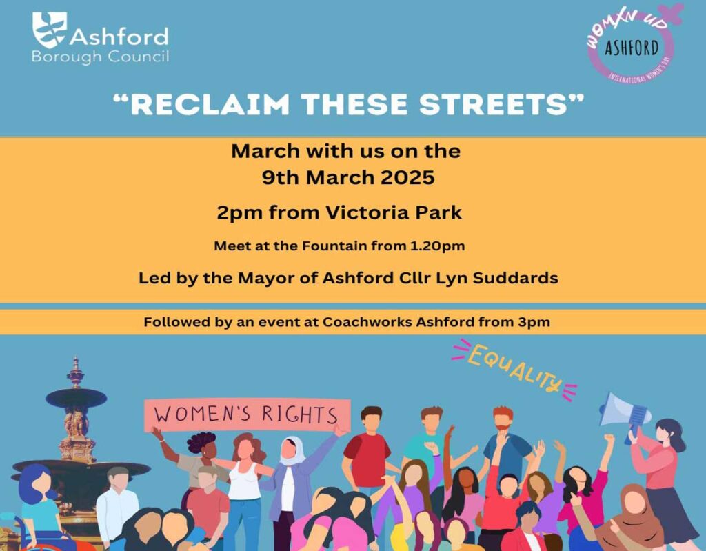 Join the vibrant celebration of women in Ashford with the ‘Reclaim These Streets’ march on Sunday, March 9th! This empowering event kicks off a fantastic two-week series dedicated to honouring women’s achievements both locally and globally.