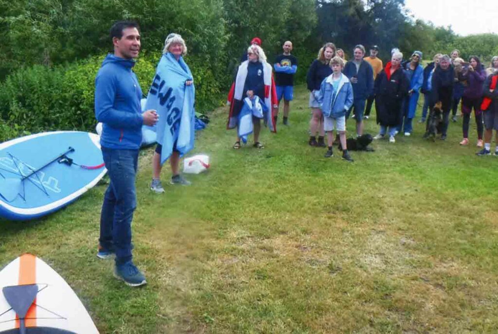 Dave Jacobs (centre left), of Dymchurch Dippers addresses the gathering Photo: Ray Duff