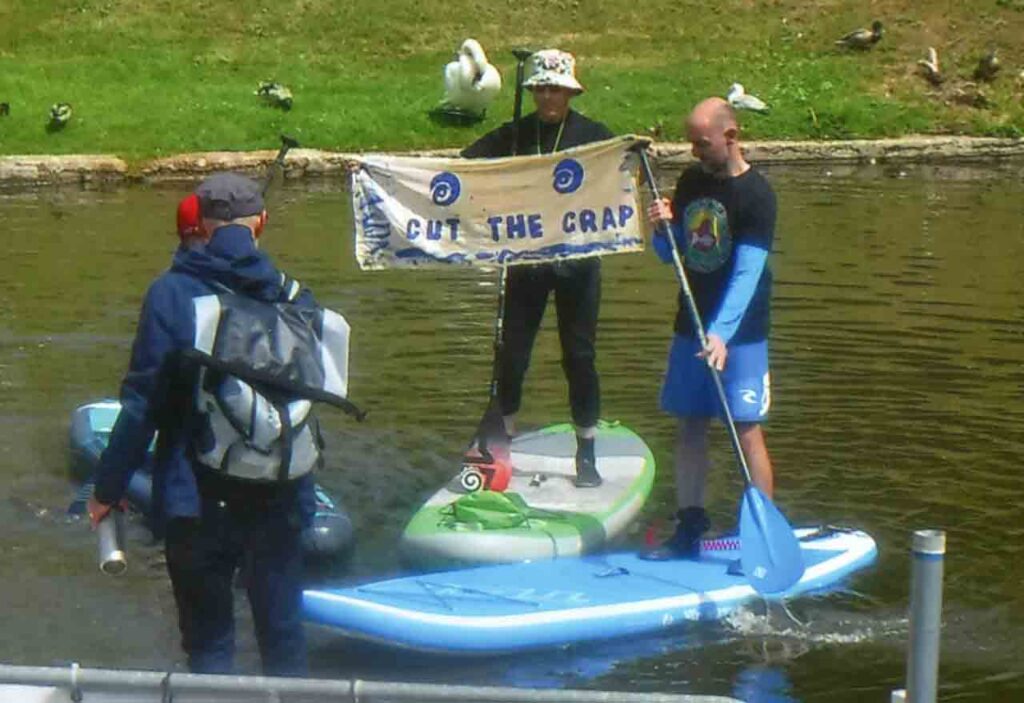 Surfers Against Sewage unveil a banner on the canal Photo: Ray Duff
