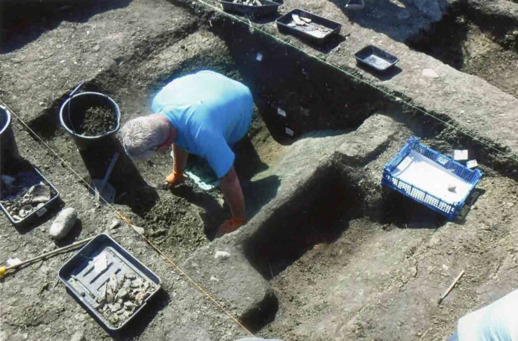 Troweling down into a late Iron Age ditch for the finds. Photo: Ray Duff