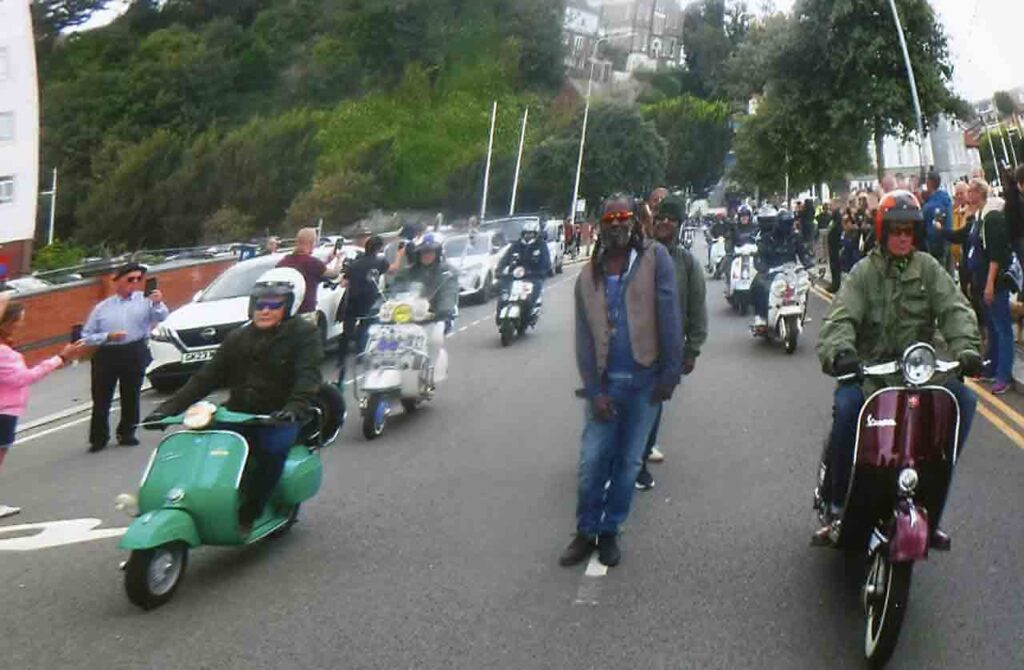 Junior Toots & The Fyah Squad Band give the scooter ride-out a rousing send off Photo: Ray Duff