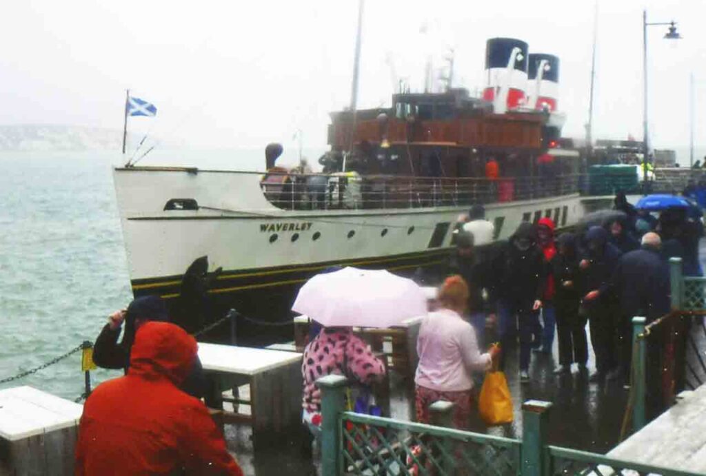 Words and pictures by Ray Duff – Despite wet and windy weather, the World’s last sea-going paddle-steamer, Waverley, made her first return to Folkestone Harbour for twenty three years and picked up passengers for a trip around the Kent coast and into the Thames Estuary before arriving, under Tower Bridge in London.