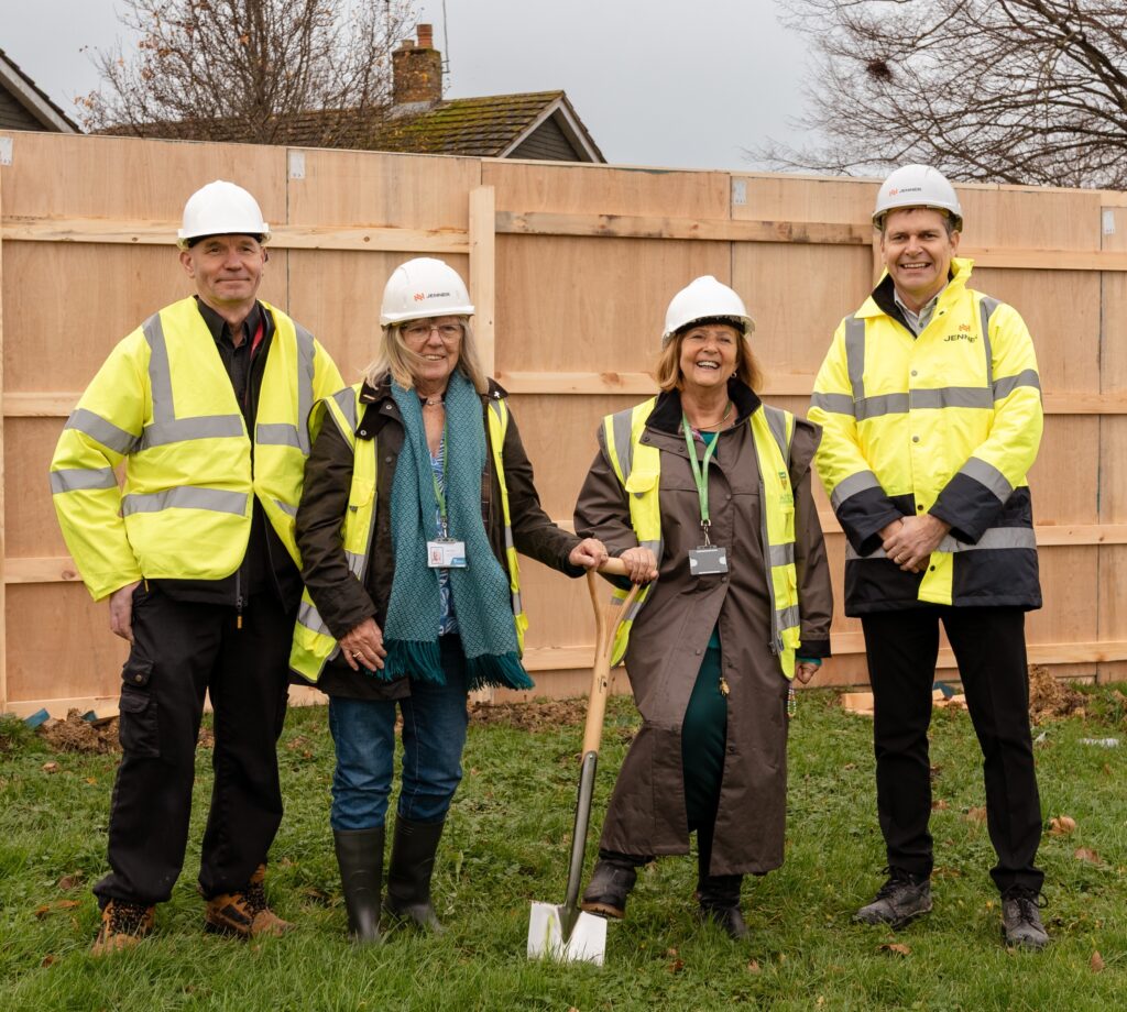 Photo caption: From L-R, ABC Leader Cllr Noel Ovenden and ward members Kate Leavey and Lyn Suddards are joined by Jenner Director Dean Elvidge for a groundbreaking ceremony at the Oakleigh House site.